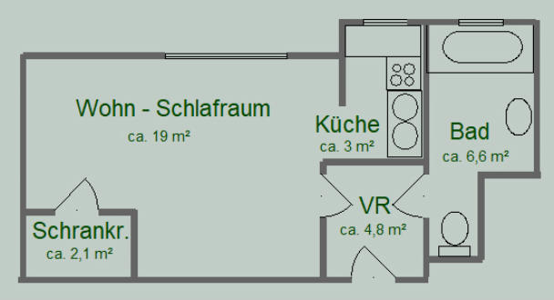 ca. 35 m² Wohnfläche, in ruhige, zentraler Wohnlage, gute Infrastruktur und öffentliche Verkehrsanbindung